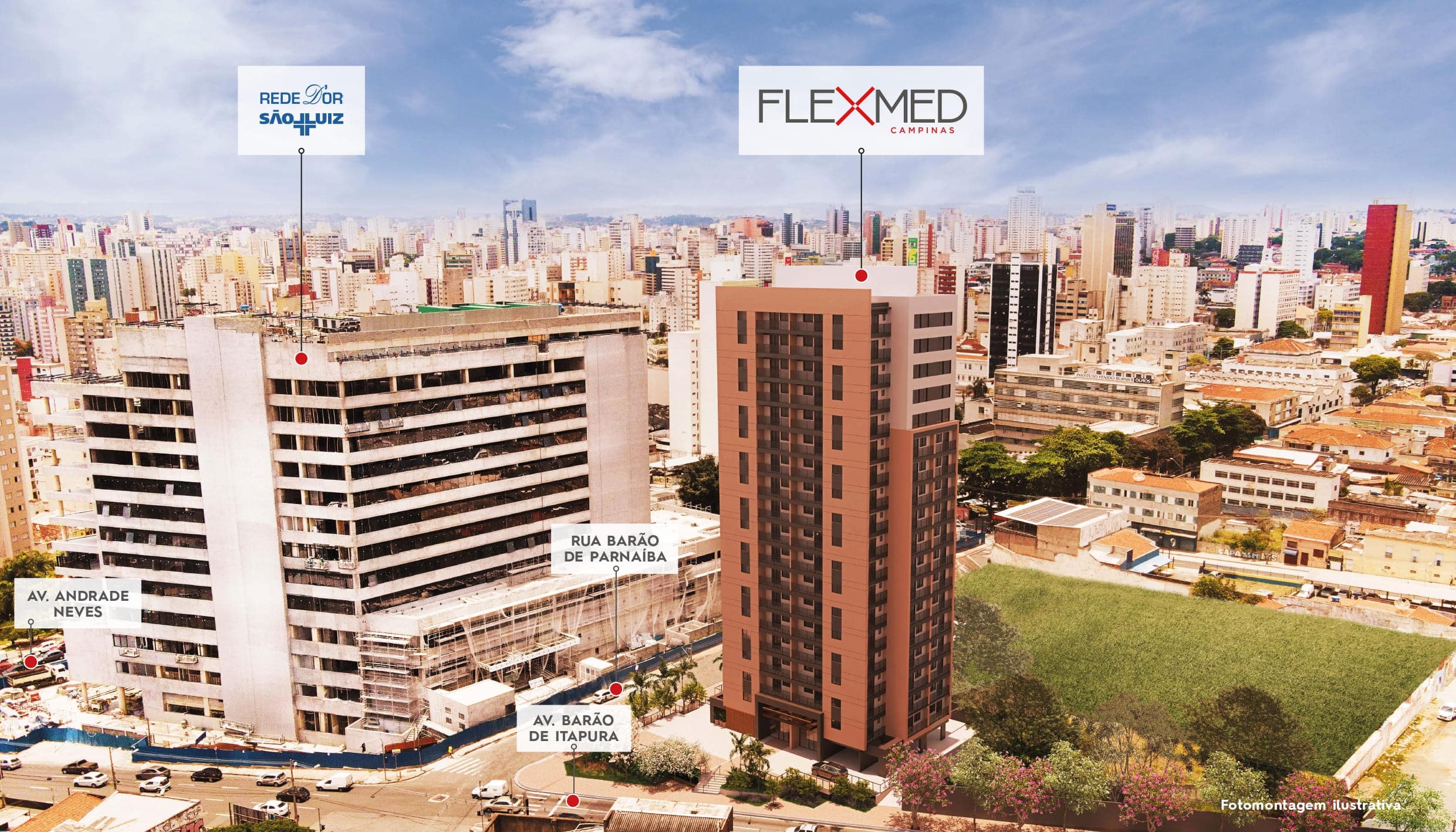 O primeiro e único complexo médico em frente ao Hospital São Luiz em Campinas.