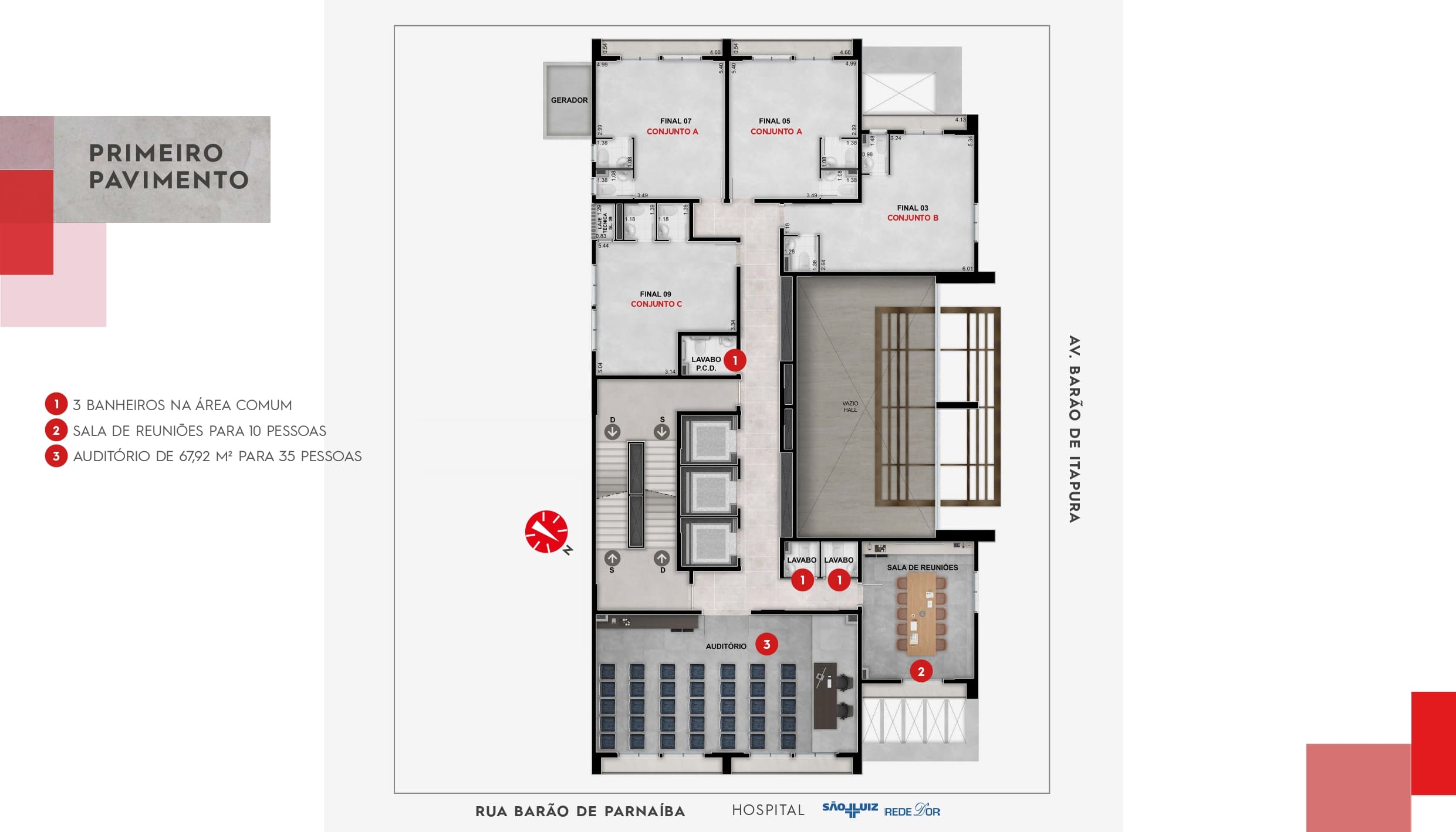 - Auditório para 35 lugares com infraestrutura completa
